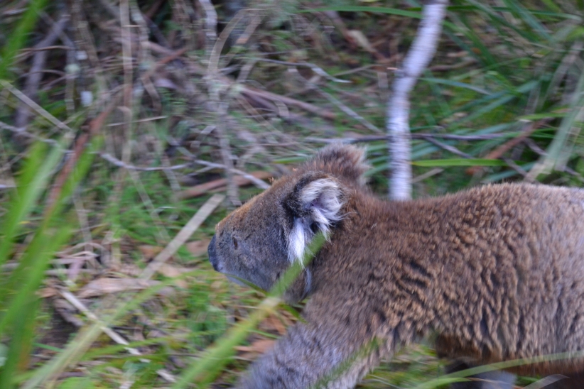 Avevamo appena imboccato la Lighthouse Road, una stradina tortuosa costeggiata da alberi di eucalipto, quando Mister sterza tutto a sinistra e frena quasi di colpo: un grosso koala se ne sta sul ciglio della strada a rovistare tra le foglie, sveglio, attivo e cammina più velocemente di quanto ci aspettassimo.