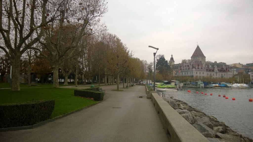 Partendo dalla stazione di Lausanne-Flon, pagando la modica cifra di 8 CHF per il biglietto giornaliero per le zone centrali 11 e 12, con la M2 abbiamo attraverso la città da nord a sud, ovvero dalla zona collinare di Croisettes – dove ci siamo affacciati solo per verificare che ci trovassimo effettivamente già in un tranquillissimo quartiere di periferia immerso nella nebbia – fino Ouchy, la stazione balneare di Losanna, dove ci si imbarca per bellissime escursioni a bordo di battelli con le ruote a pale.